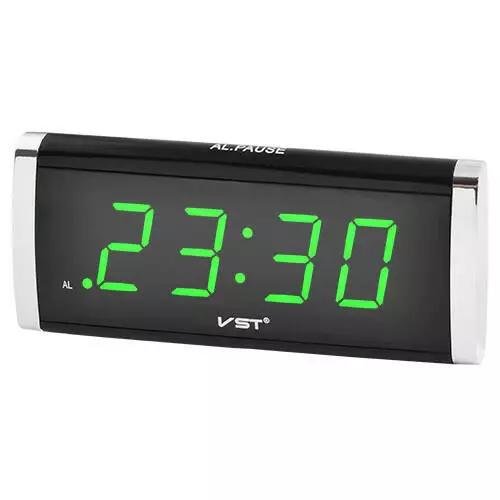 LED-дисплей, будильник (отключение нажатием на часы сверху) , яркий салатовый свет. Функция памяти (запасное питание от 2-ух батареек типа AAA) - не с