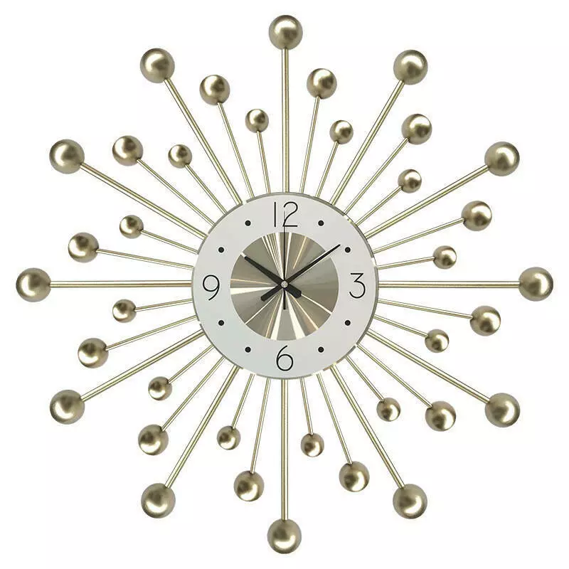 Настінний годинник "Сонце" діаметром 48 см має вишуканий дизайн у формі сонця з витонченими променями. Він виготовлений з якісного металу. Циферблат розташований у центрі годинника і має чіткі римські цифри. Стрілки годинника витончені та елегантні. Незвичайний дизайн та розмір роблять цей годинник стильним доповненням до будь-якого інтер'єру. Він чудово підійде для вітальні, спальні, кухні або будь-якої іншої кімнати.