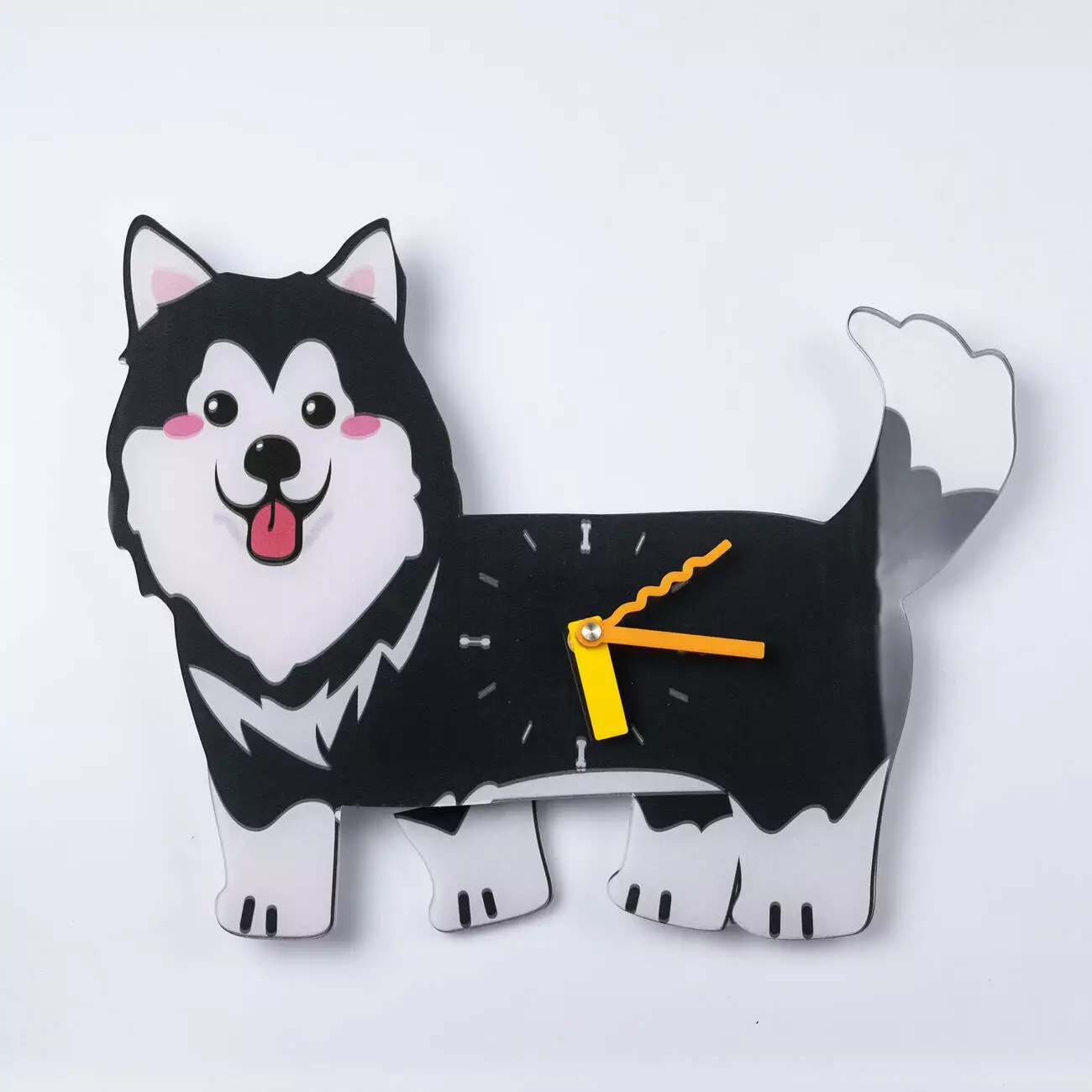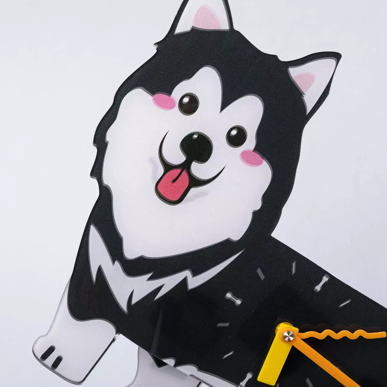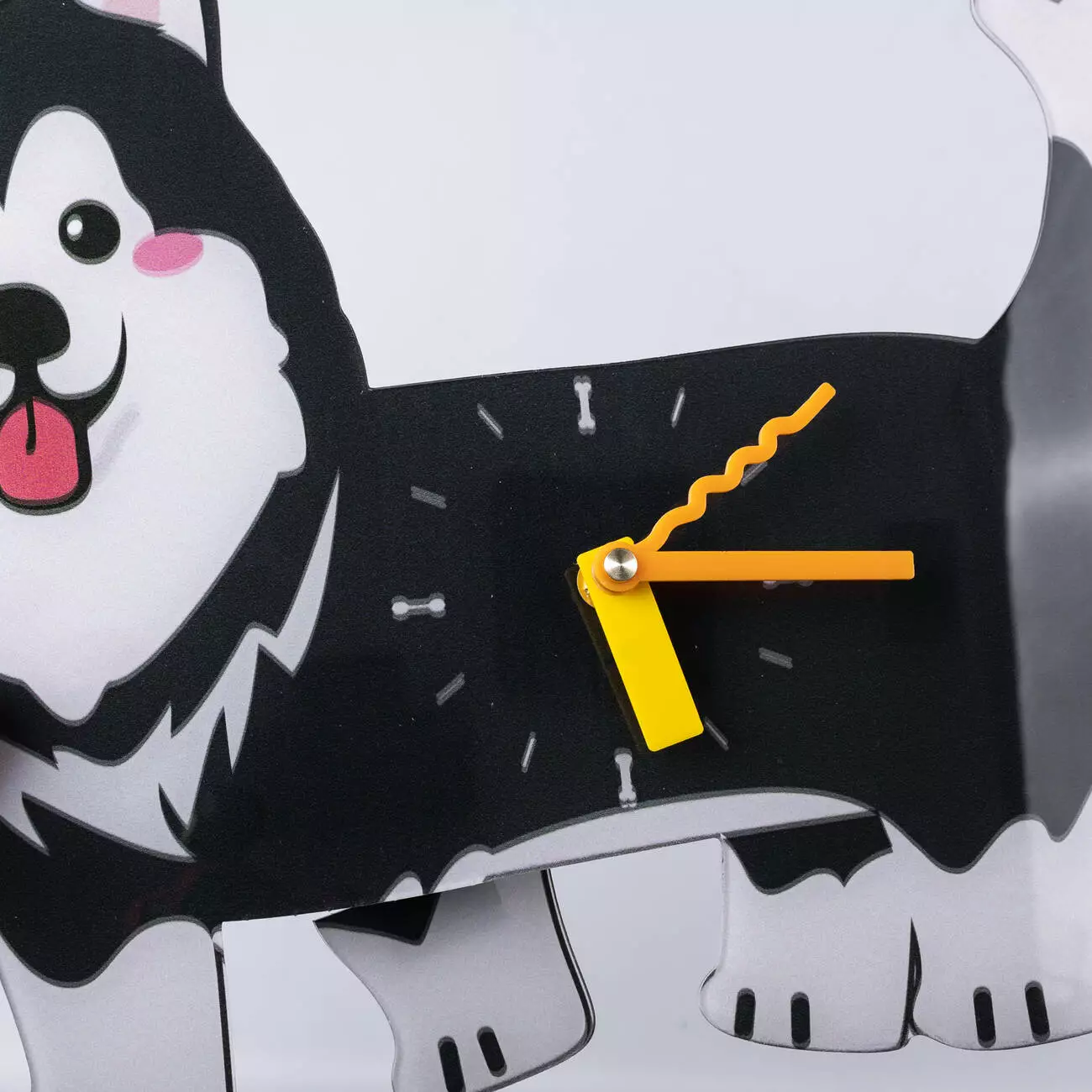 Настінний годинник у формі собачки поєднує практичність і декоративність, стаючи яскравим акцентом у кімнаті. Оригінальний дизайн робить його особливо доречним у дитячій кімнаті. Завдяки легкому корпусу годинник зручно встановлювати на будь-якій стіні.