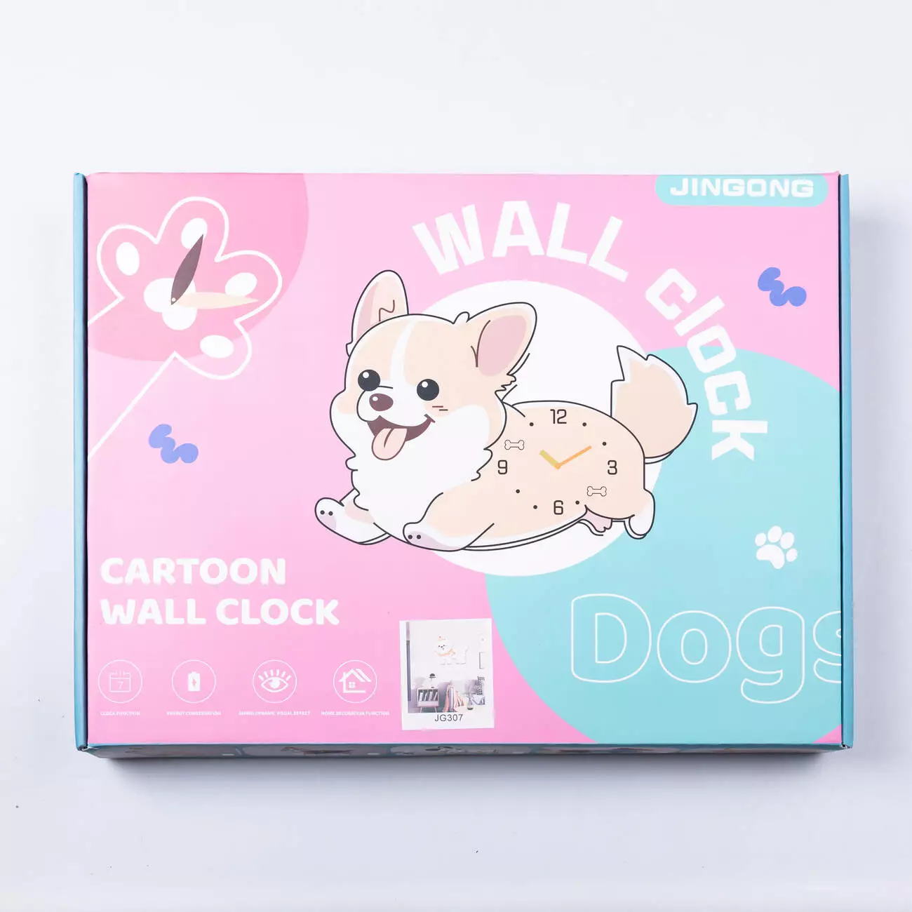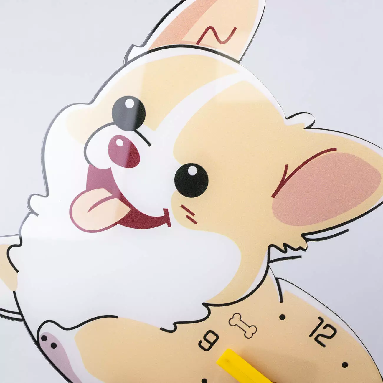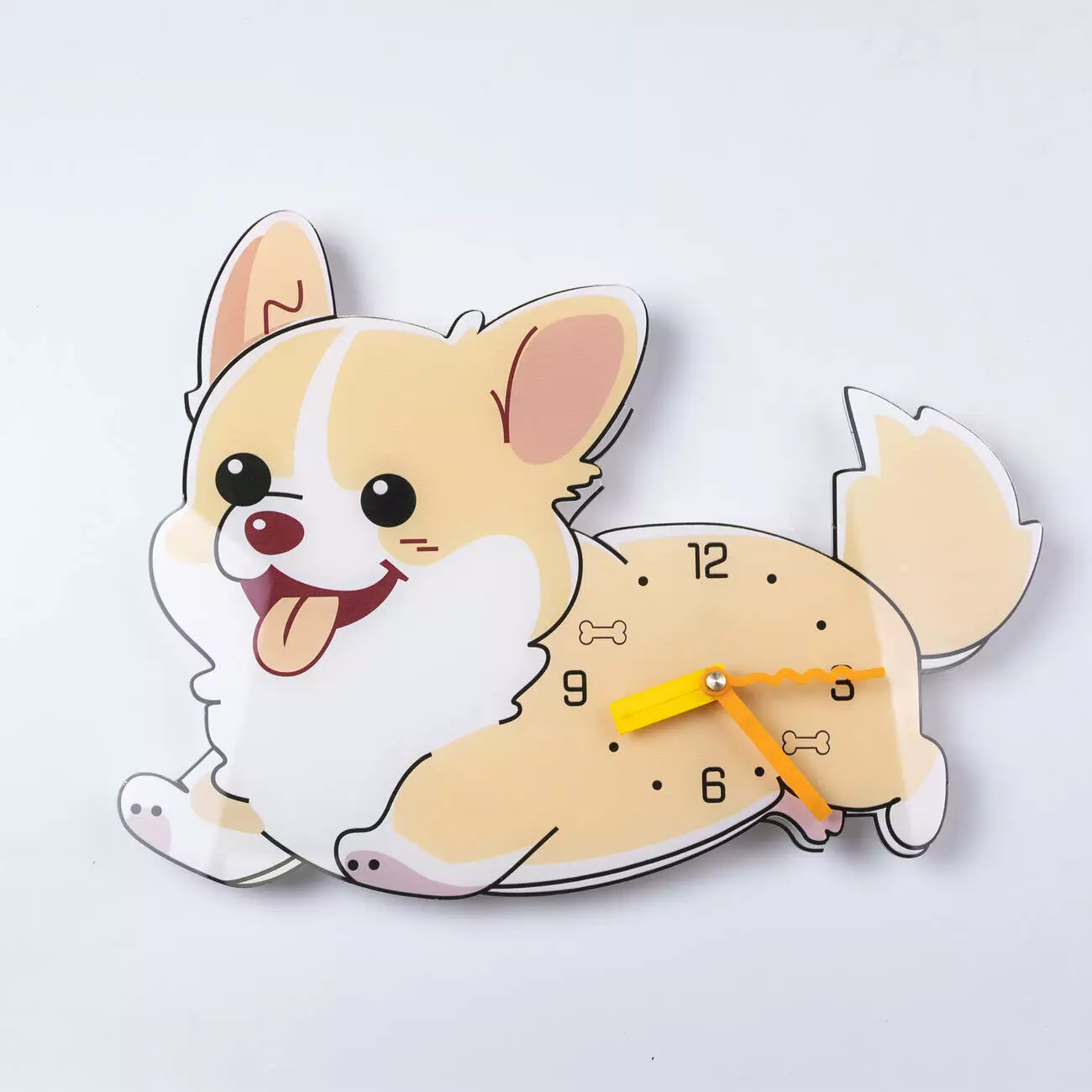 Настінний годинник у формі собачки поєднує практичність і декоративність, стаючи яскравим акцентом у кімнаті. Оригінальний дизайн робить його особливо доречним у дитячій кімнаті. Завдяки легкому корпусу годинник зручно встановлювати на будь-якій стіні.