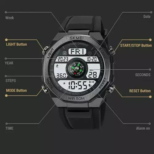 Годинники наручні 2209BKWT SKMEI, BLACK-WHITE, Compass, Pedometer