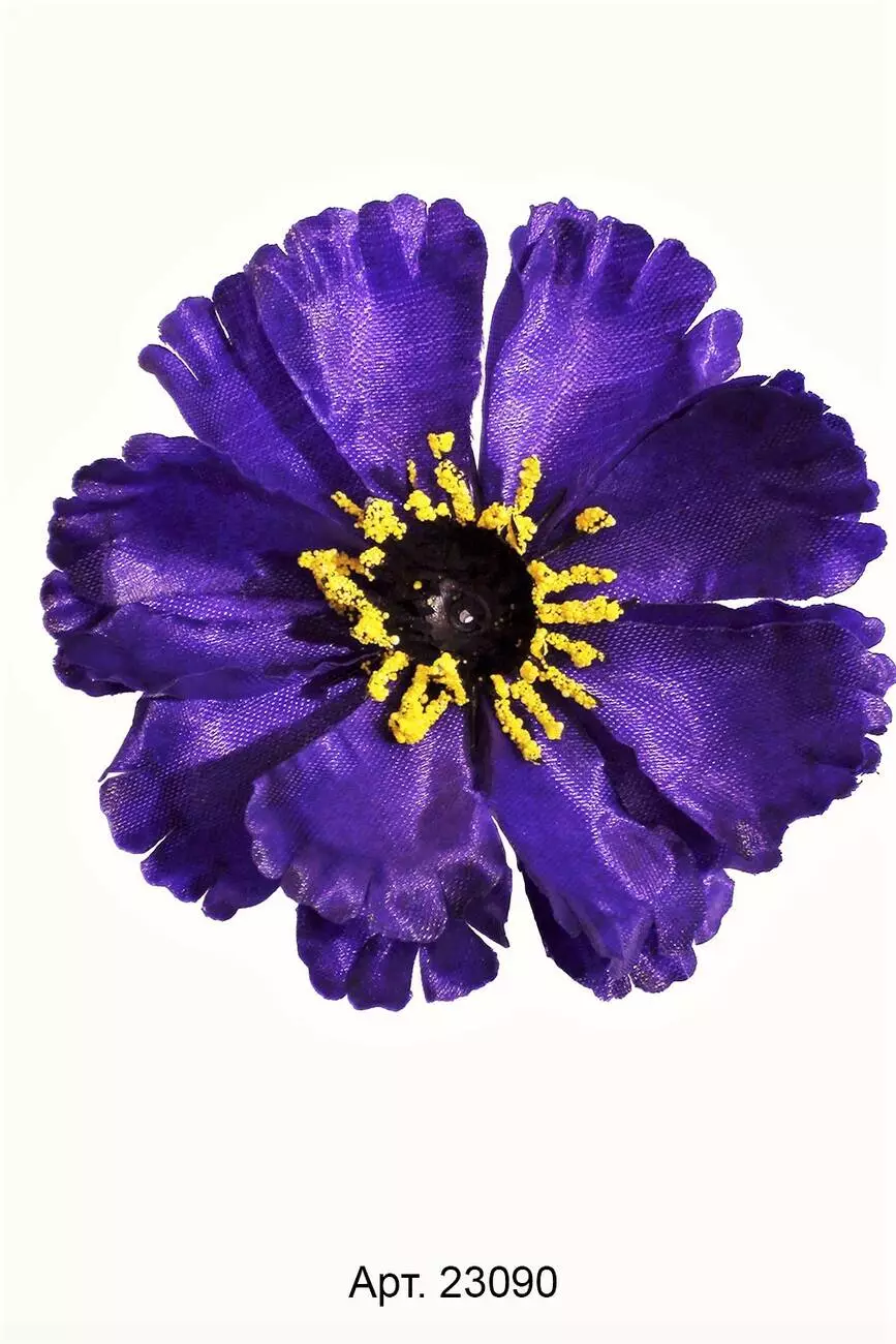 Штучна голова маку з атласу діаметром 12 см. У прозорій фабричній упаковці зібрані 50 шт однакового забарвлення.