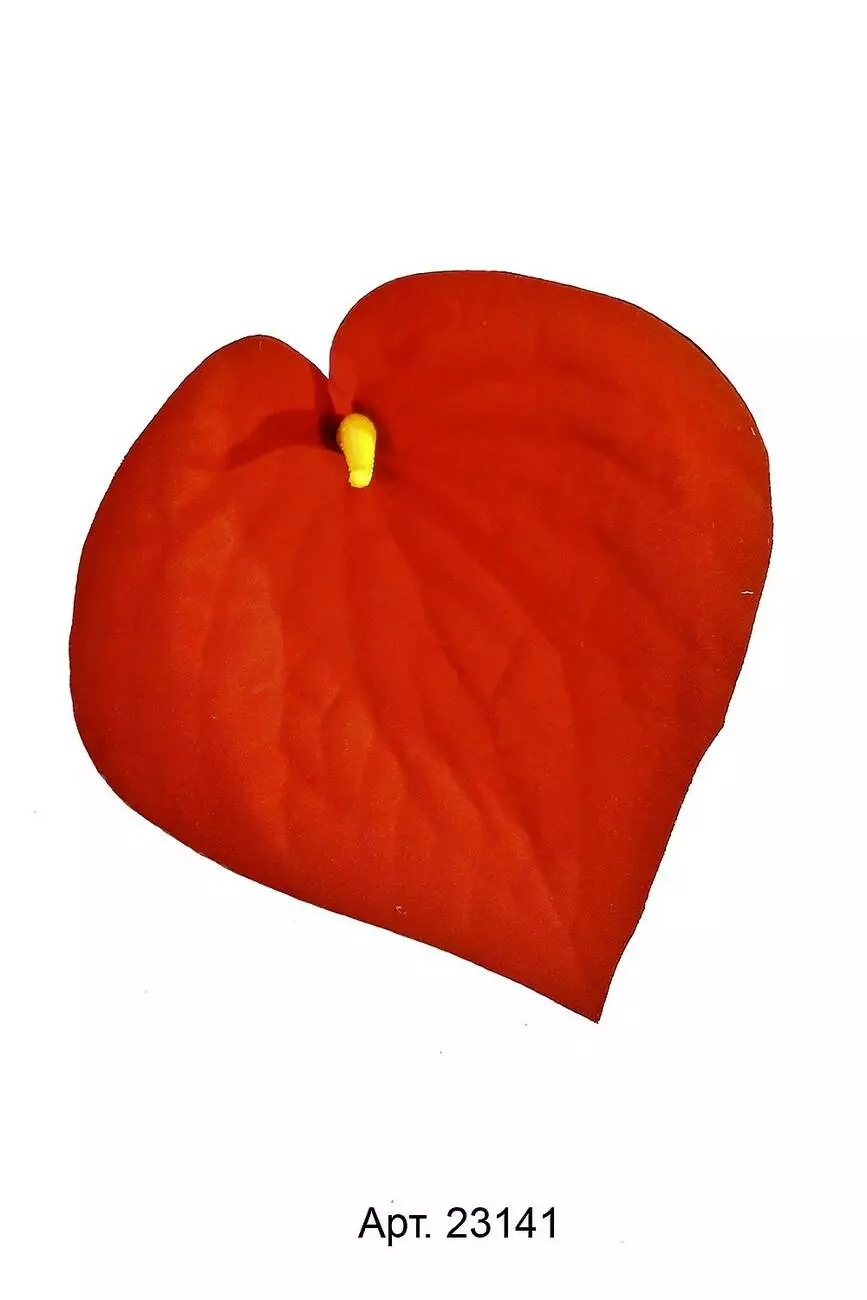 Штучна голова кали з оксамиту ширина 13 см, довжина 13,5 см. У прозорій фабричній упаковці зібрані 100 шт однакового забарвлення.