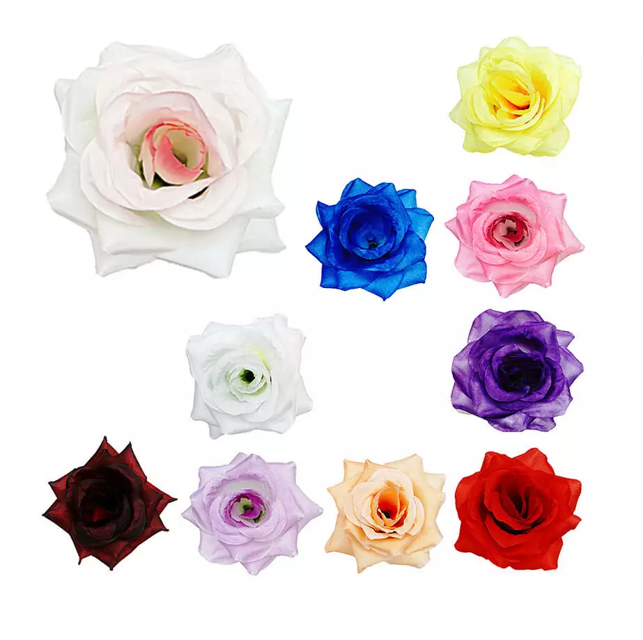 Штучна голова троянди гострої шовк діаметр голови 12 см. У прозорій фабричній упаковці зібрано 50 голов троянди з шовку однакового забарвлення.