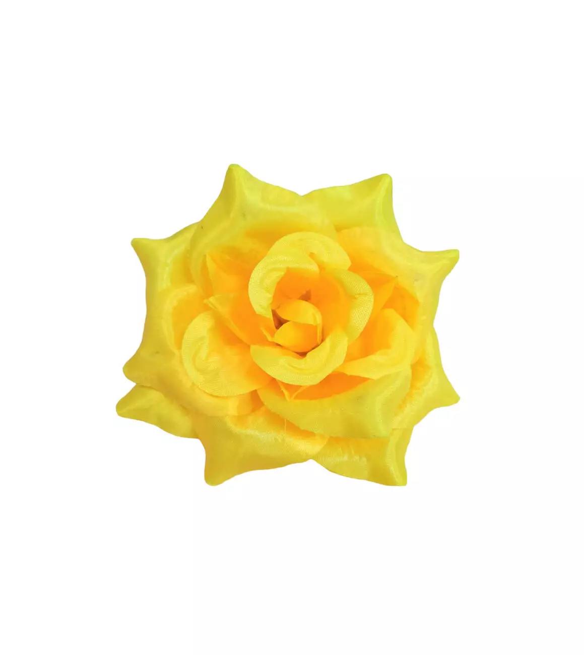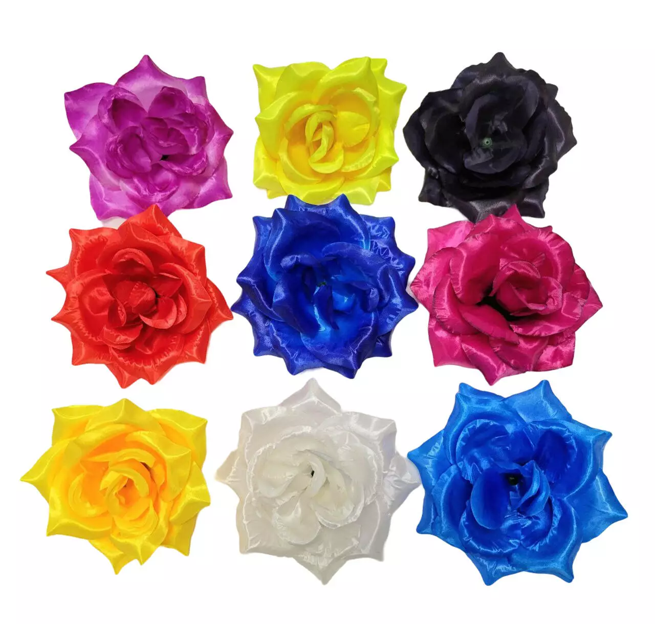 Штучна голова троянди з атласу діаметром 15 см. У прозорій фабричній упаковці зібрані 20 шт однакового забарвлення.