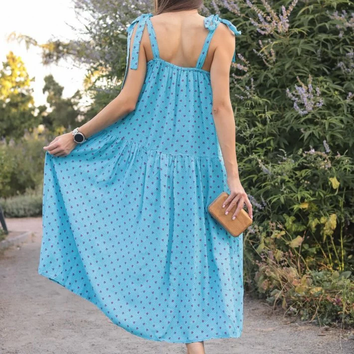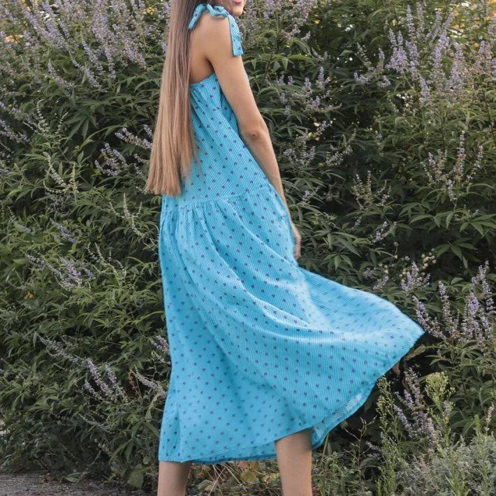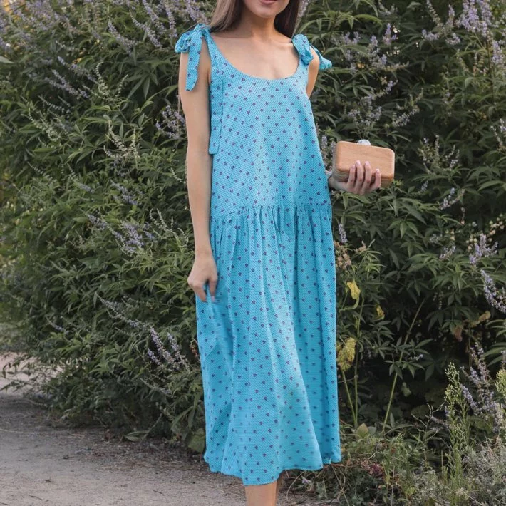 Бірюзова сукня на регульованих бретелях. Ззаду по спинці є