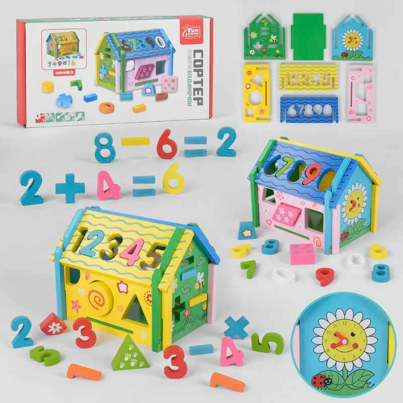 гр Дерев'яний логічний теремок 57107 (16) ""4FUN Game Club Wood"", сортер, цифри, фігури, в коробці