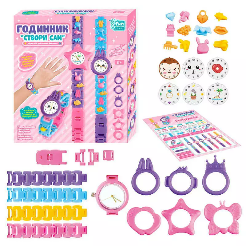 гр Годинник “Створи сам” 15245 (18) "4FUN Game Club", аналоговий годинник, браслети, циферблати, прикраси, у коробці