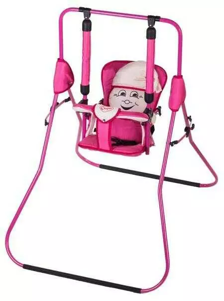 гр Гойдалка підлогова "Алінка" 204730 (1) малиновий каркас, малинова матерія, бежевий гномик, в пакеті