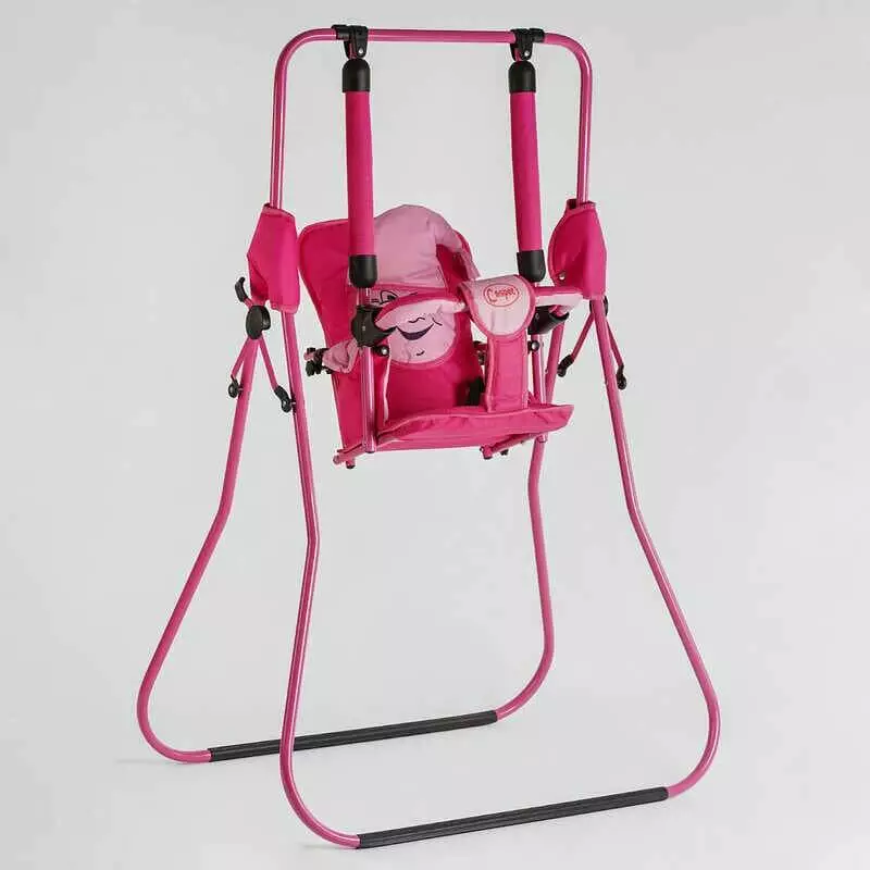 гр Гойдалка підлогова "Алінка" 205423 (1) малиновий каркас, малинова матерія, рожевий гномик, в пакеті