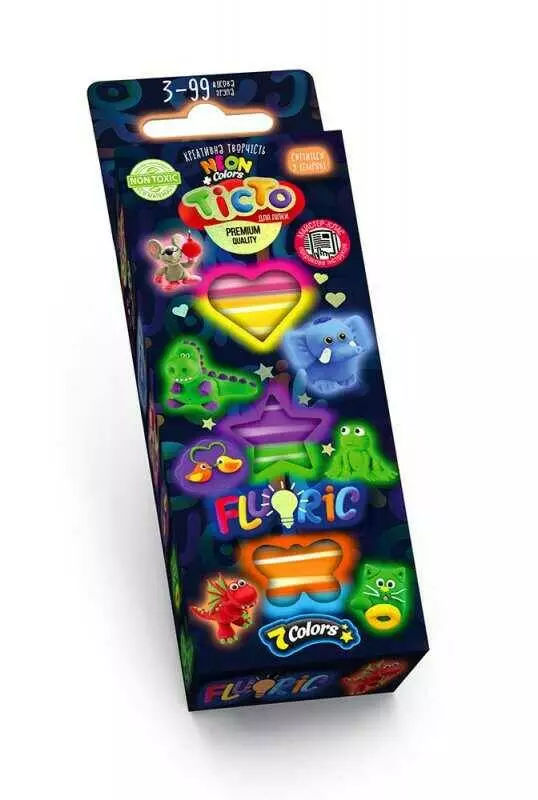 гр Креативна творчість "Тісто для ліплення "FLUORIC" TMD-FL-7-01U,02U (укр) (30) коробка 7 кольорів "Danko Toys"