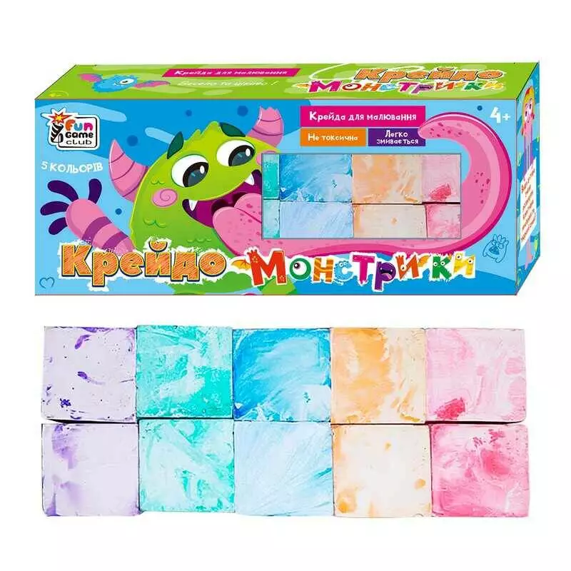 гр Крейда "Крейдо-Монстрики" 62305 (24) "4FUN Game Club", 10 штук, 5 кольорів, мармурова, в коробці