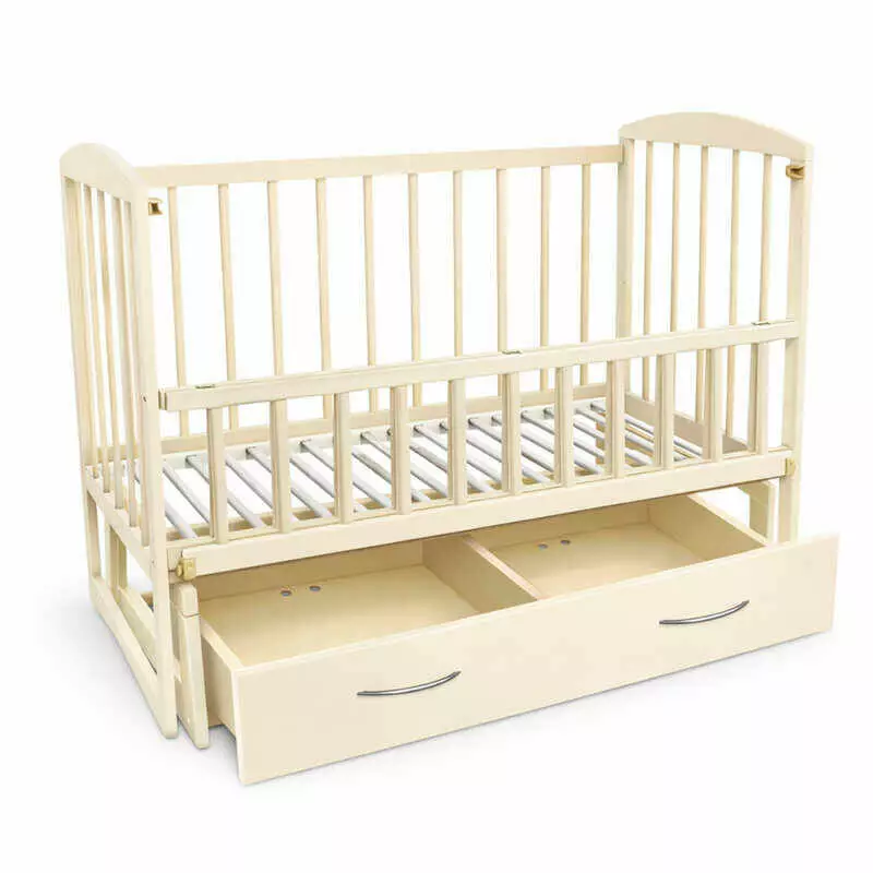 гр Ліжечко дерев`яне маятник+шухляда - відкидний бортик "Няша" (1) вільха - колір білий, у плівці