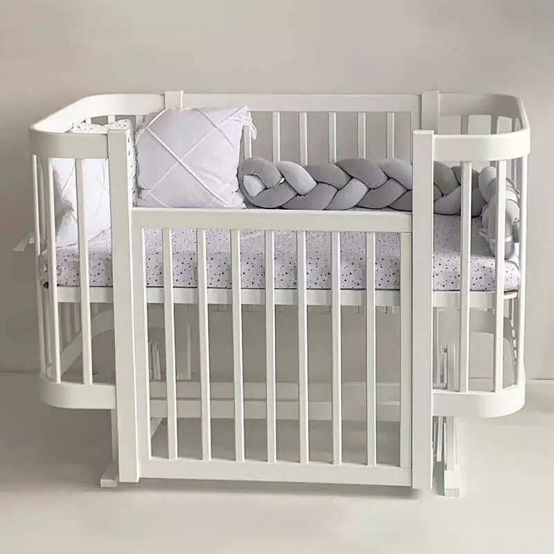 гр Ліжечко дитяче "МІЯ" (1) бук, шарнір-підшипник, опускна боковина (біле+біла стійка)