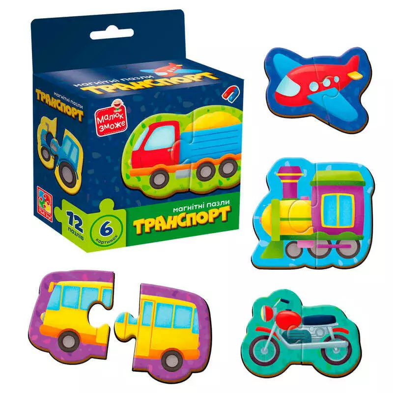 гр Магнітні пазли "Транспорт" VT1733-02 (20) "Vladi Toys", 6 картинок (12 деталей), в коробці