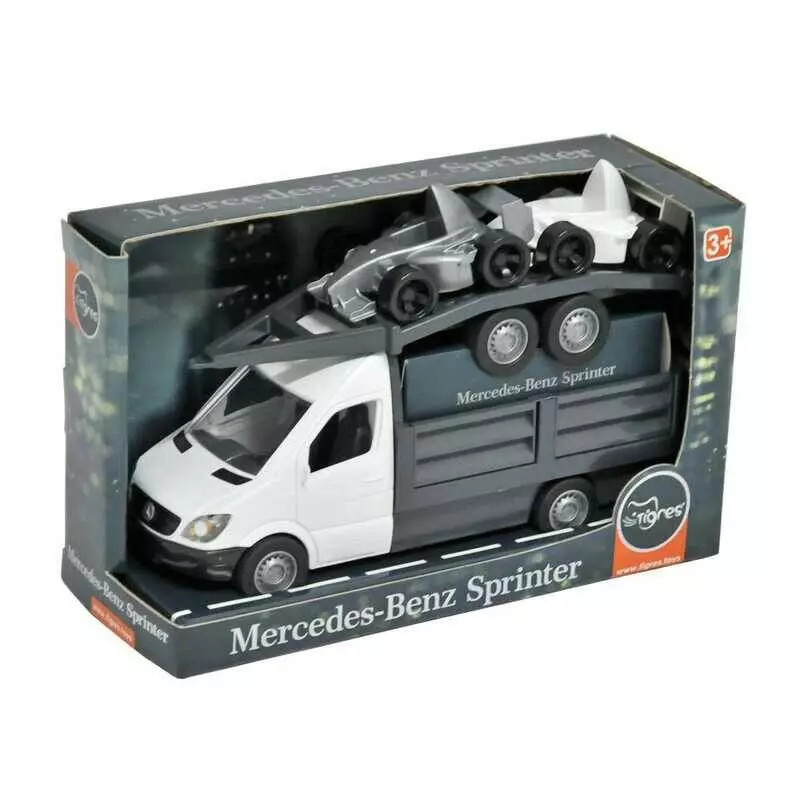гр Машина "Mercedes-Benz Sprinter" бортовой с лафетом 39670 (БЕЛЫЙ) (6) "ТИГРЕС" открываются двери кабины, 2 машинки, в коробке