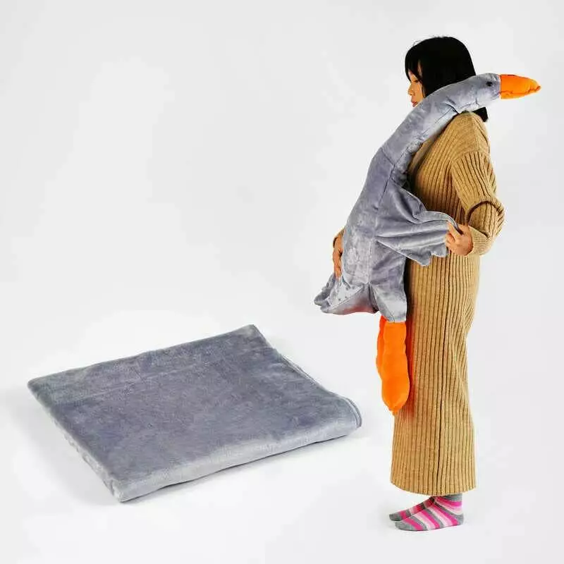 гр М`яка іграшка "Гусак-обіймак" 81651 (20) З ПЛЕДОМ 101х93 см, висота іграшки 100 см, колір сірий