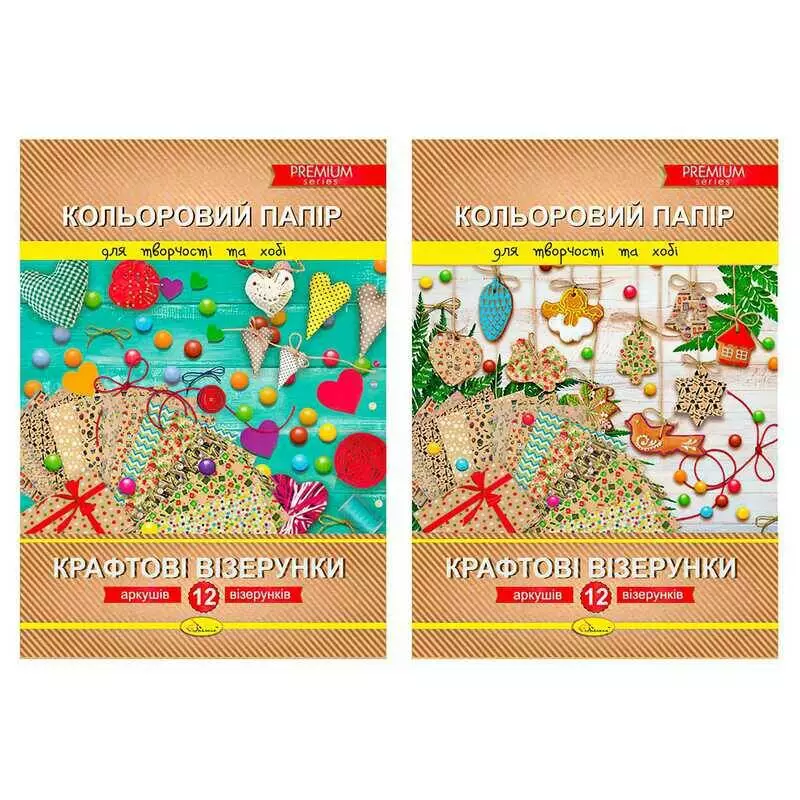 гр Набір кольорового паперу "Крафтові візерунки" Преміум А4, 12 арк. (25) АП-1216 "Апельсин"
