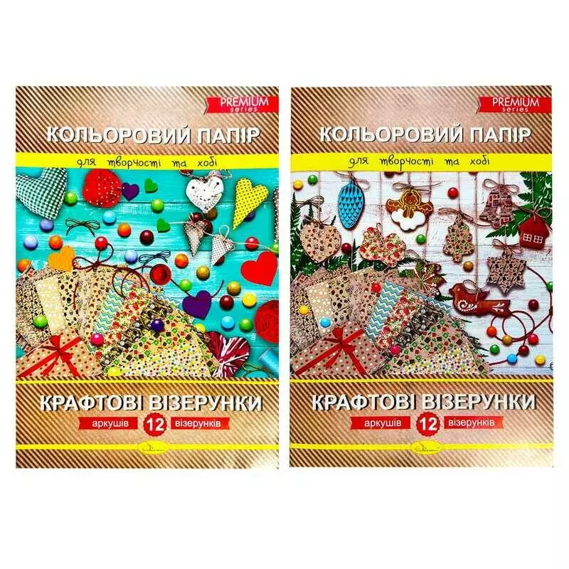 гр Набір кольорового паперу "Крафтові візерунки" Премиум А4, 12 аркушів АП-1210 (25) "Апельсин"