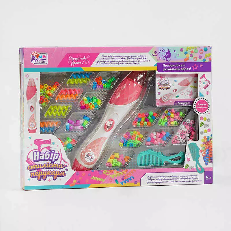 гр Набір стиліста 39407 (18/2) "4FUN Game Club" пристрій для зачісок, бісер, кліпси, пружинки, в коробці