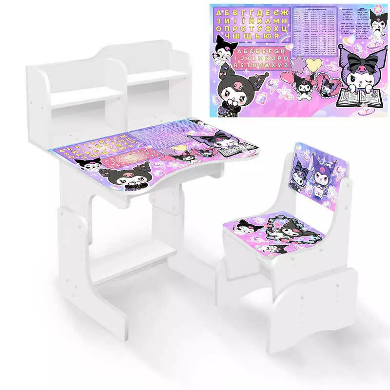 гр Парта шкільна "Фіолетовий кролик" ПШ 063 (1) ЛДСП, колір біла, 69*45 см, + 1 стілець, з пеналом