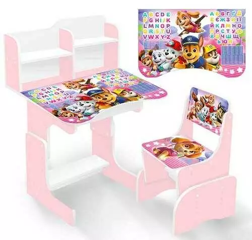 гр Парта шкільна "Цуценята" ПШ 060 / ПШ 061 (1) ЛДСП, сакура, 69*45 см, + 1 стілець, з пеналом
