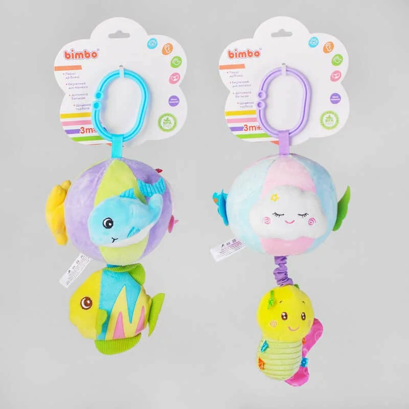 гр Брязкальце м`яке ВМ - 55004 (60) "Bimbo", 2 види, пискавка, заводний механізм, пластикова кліпса, шелесткі елементи, в пакеті