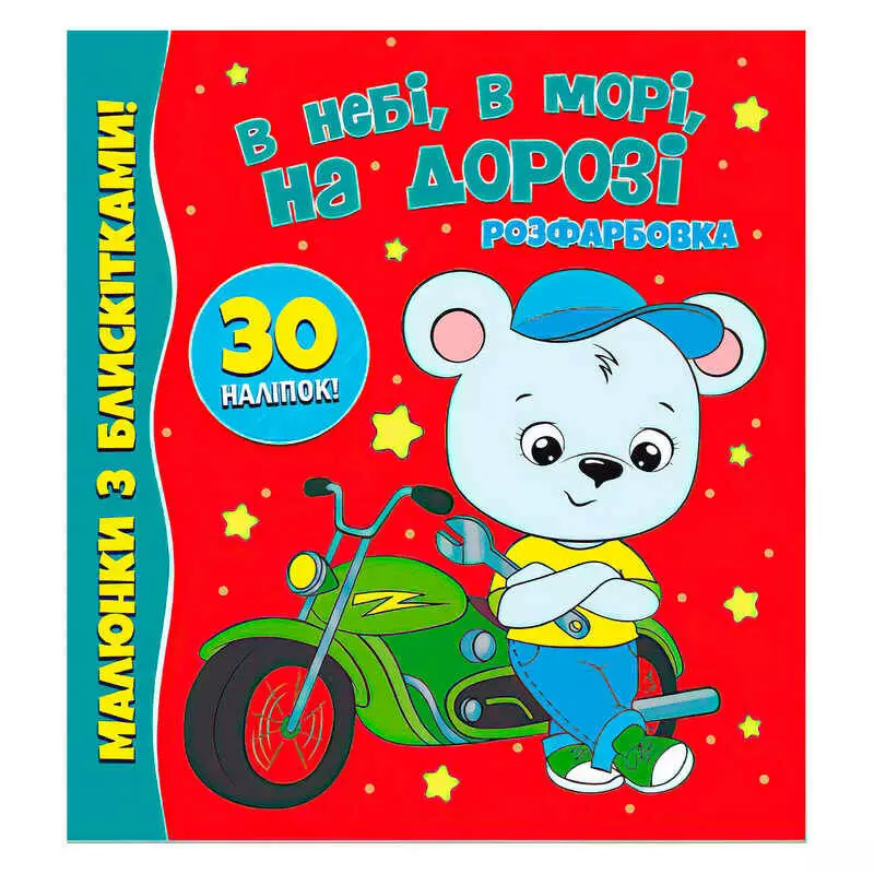 гр Розфарбовка А4 з блискітками + 30 наліпок "В небі, в морі, на дорозі" (50) 9786177775842