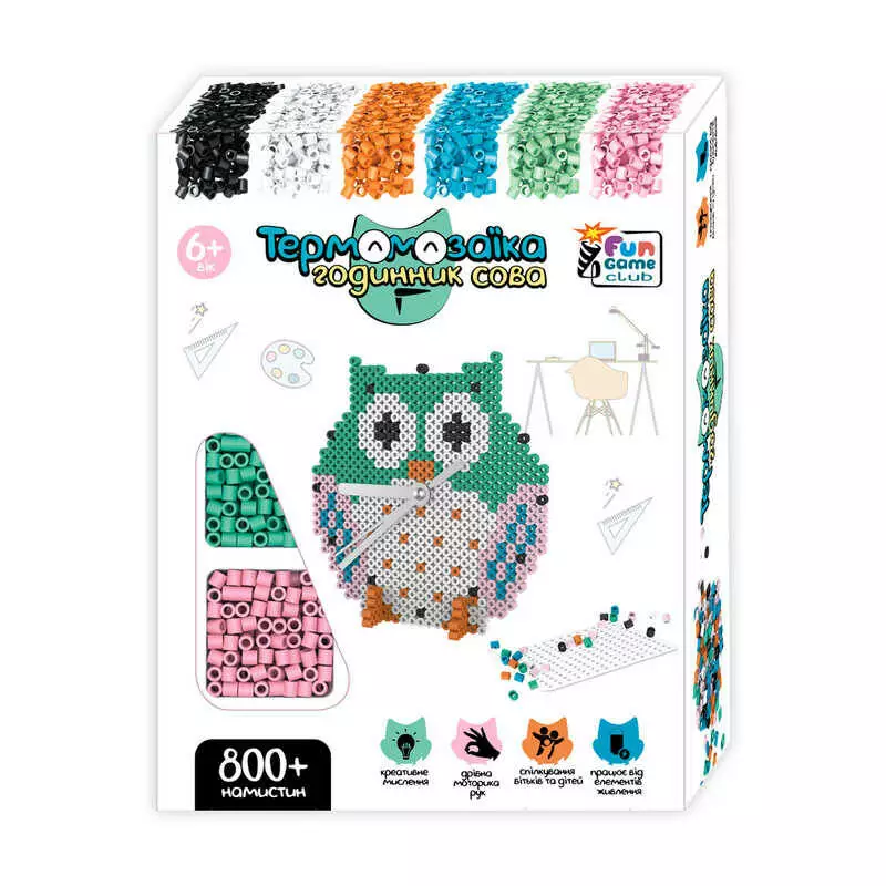 гр Термомозаїка 28055 (48) "4FUN Game Club", годинник “Сова”, 800+ намистин, в коробці