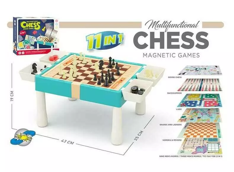 Главная > Каталог > Игрушки > Настольные игры > Гра "11в1" 9801 B (36) 11 в 1, шахи, шашки, нарди, гомоку, змійки та драбинки, лудо, ігрові елементи, в коробці оптом
