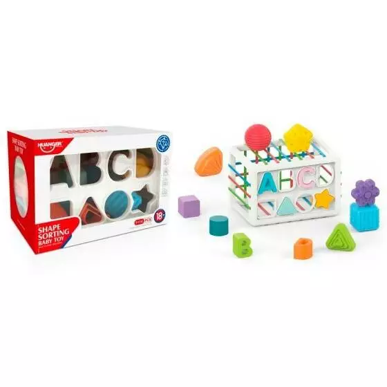 Фотография 1 товарной позиции интернет-магазина детских игрушек www.smarttoys.com.ua Гра HE0209 сортер, грані з гумками, фігурки 10.шт., літери 4 шт., кор., 18,5-12,5-13 см.