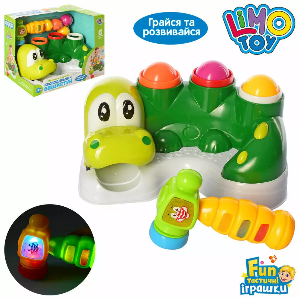 Фотография 1 товарной позиции интернет-магазина детских игрушек www.smarttoys.com.ua Гра M 5475 крокодил, стукалка, молоток, кульки, муз., світло, бат., кор., 30-23,5-20 см.