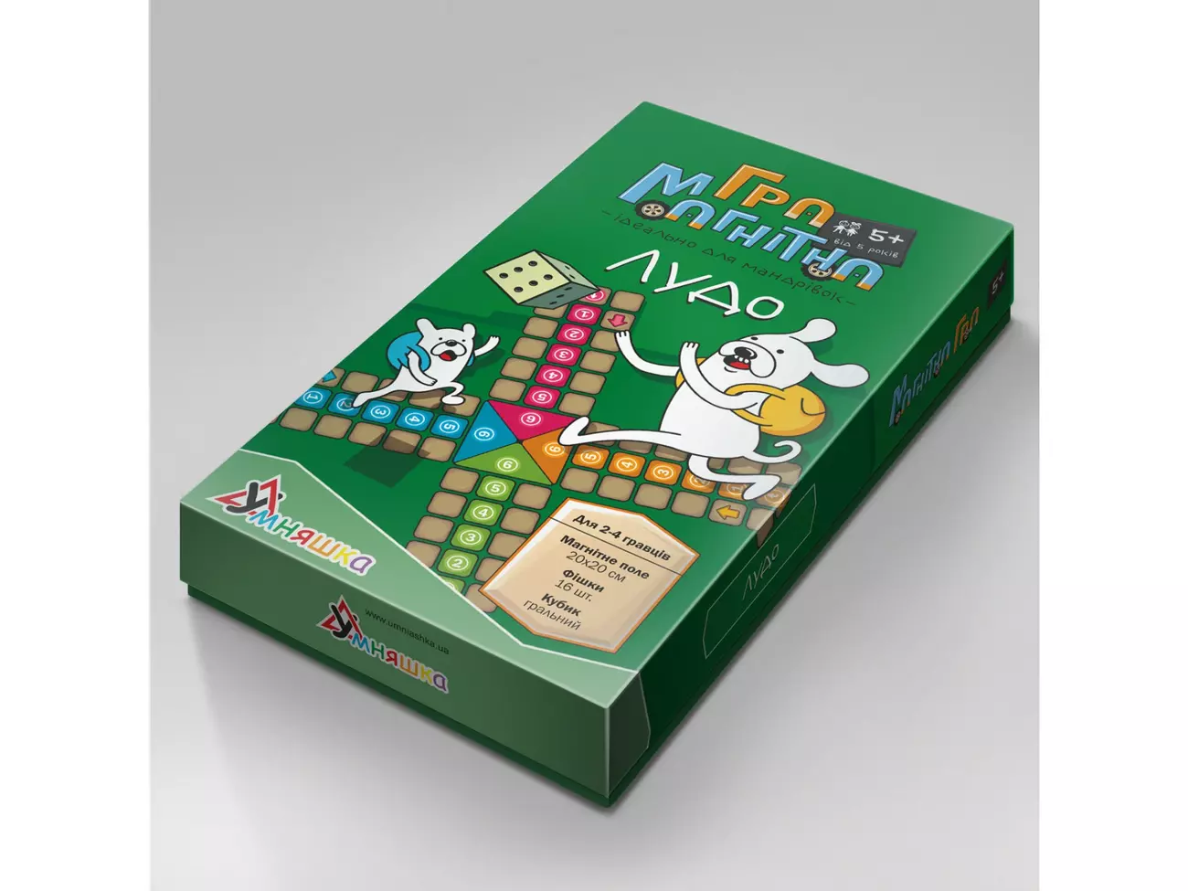 Мета гри: швидше за всіх провести свої 4 фішки по маршруту і завести в будинок, дотримуючись певних правил ходів. Завдяки магнітним полю і фішкам, а також компактному розміру, гра ідеально підходить для подорожей! Склад: магнітне поле 20х20см, 4 комплекти фішок по 4 кольори, гральний кубик. Коробка 23х12,5х2,5см. Від 5 років. Коробка 23х12,5х2,5см.
