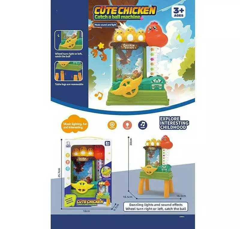 Гра з кульками QB 131 Y (48) “Курчата”, звук, підсвічування, автоматичний підіймач, кольорові кульки, кермо, працює від батарейок, в коробці