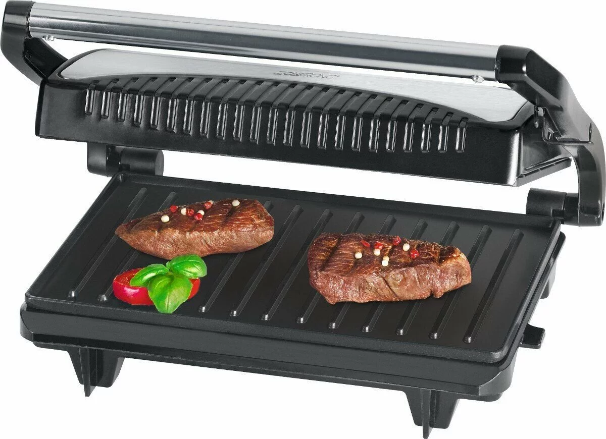 Завдяки грилю Clatronic MG 3519 ви зможете приготувати стейки з м'яса, підсмажити рибу чи овочі, а також побалувати сім'ю смачними гарячими бутербродами на сніданок. Жир, який утворюється при смаженні м'яса чи риби, стікатиме спеціальним стокам у піддон.