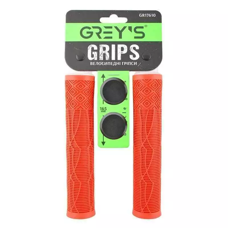 Грипсы на велосипед 16.5см Grey's без замка с заглушками красные 2шт (GR17610)