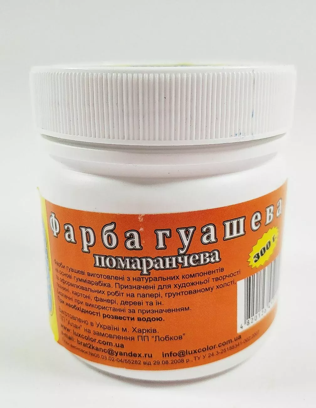 Гуашь "ЛЮКС КОЛОР" /Оранжевый/ 300гр (арт.ГО-300 )/18ящ