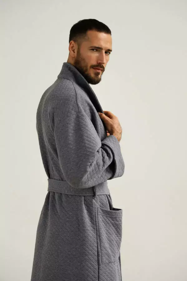 Темно-сірий колір додає халату елегантності та стриманості. Такий колір виглядає стильно та підходить для чоловіків будь-якого віку. Темно-сірий відтінок також практичний у догляді — він не вицвітає і зберігає свою насиченість навіть після багаторазових прань. Це робить халат не тільки стильним, але й практичним вибором для повсякденного використання.