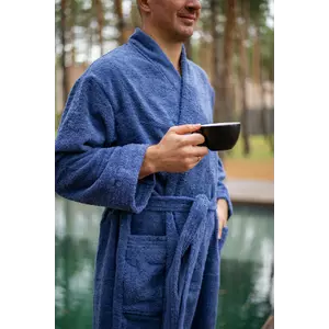 Халат махровий "Кімоно" джинс з поясом, розмір S. Халат виготовлено з 100% високоякісної бавовни. Ідеально підійде для SPA центрів, салонів краси, готелів, спортивних баз.