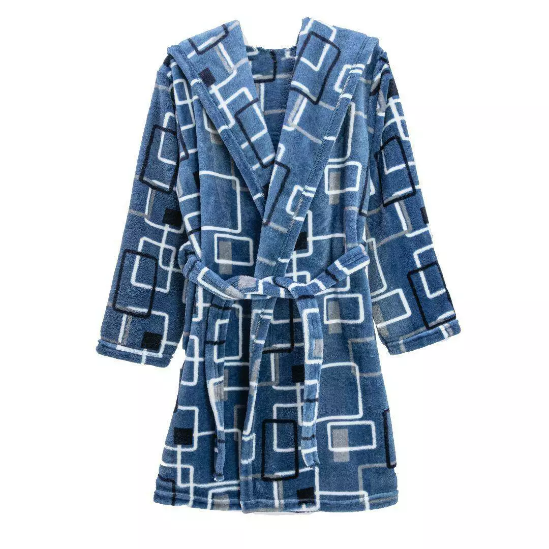 Халат сделан под пояс. Имеет большой капюшон.