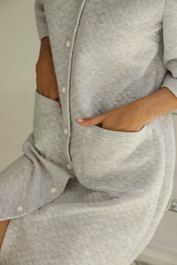 Утеплений халат ізстьобаного трикотажу той самий комфортабельний, домашній варіант одягу. Вибір між кавовим та сірим меланжем дозволяє підкреслити ваш особистість. Поглибить відчуття спокою та вишуканості, обираючи цей стильний елемент гардеробу.