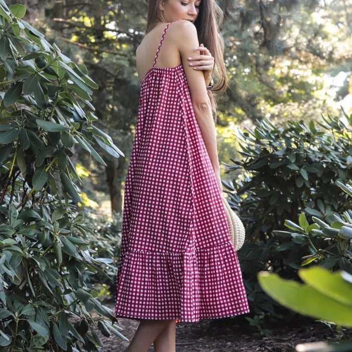 Червоний сарафан на регульованих бретелях. Позаду по спинці