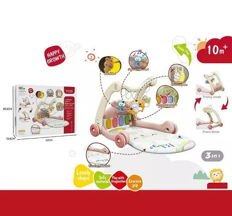 Ходунки 368-65 R (8) 3в1, килимок, музична панель, музика, регулювання гучності, підсвічування, 5 підвісок, в коробці