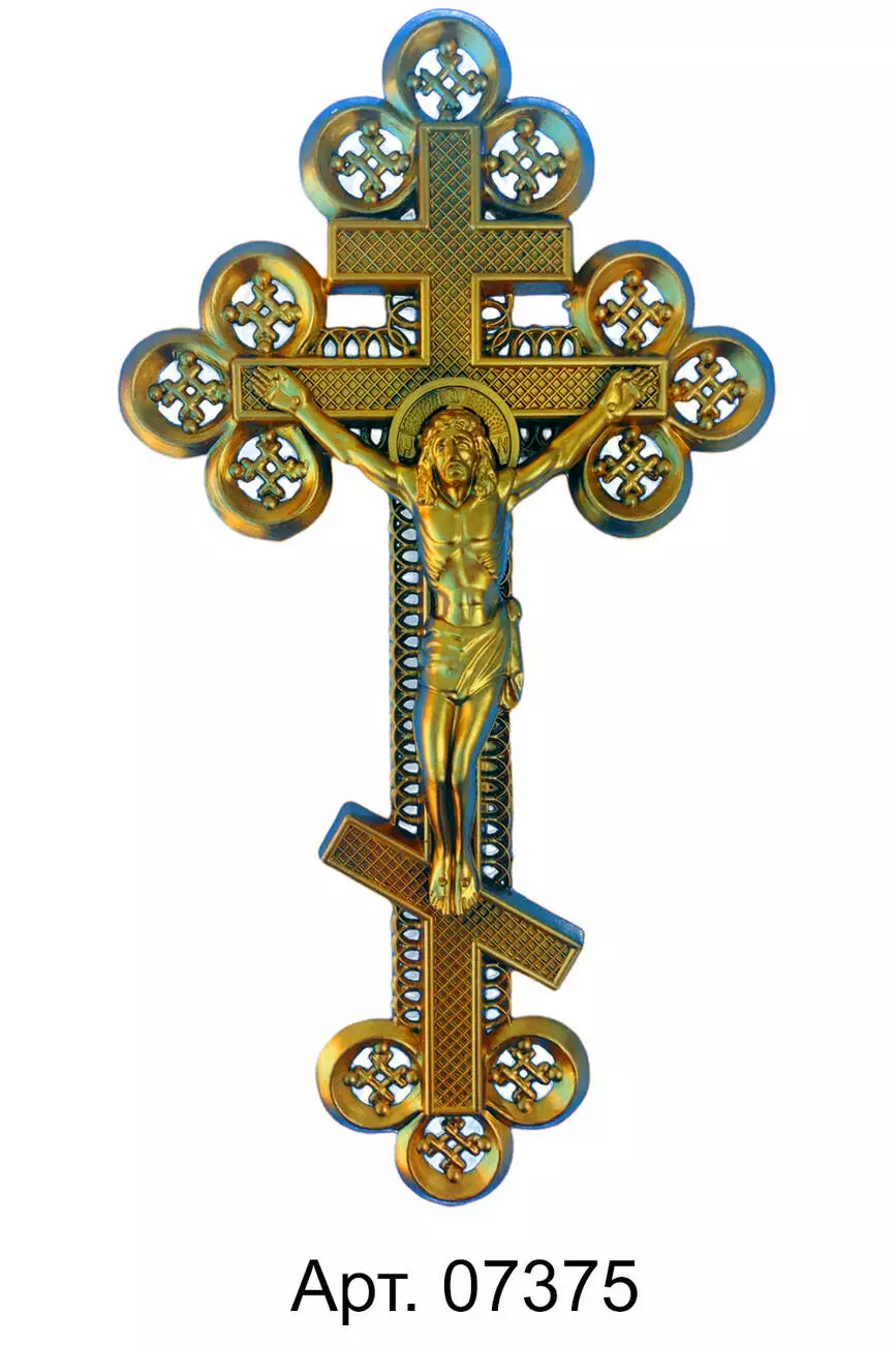 Хрест пластиковий ажурний з розп`яттям фарбований, 2 шт в упаковці. Розмір 360*193 мм.