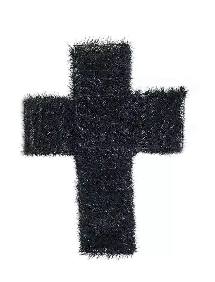 Вінок зі штучної хвої у формі хреста, розмір 80*60*10 см.