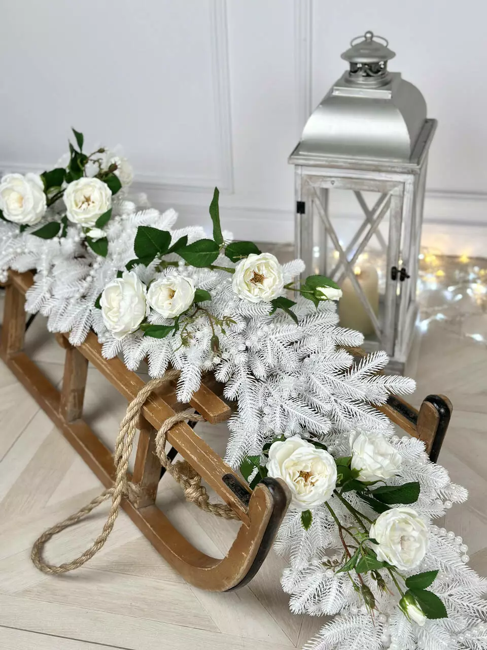 Чистий білий колір виглядає охайно та благородно, легко поєднується з різними стилями декору — від скандинавського та мінімалізму до святкових композицій з квітами, ліхтарями, свічками або гірляндами з підсвіткою. Вона додає простору світла, легкості й відчуття спокійного святкового затишку навіть без додаткових прикрас.