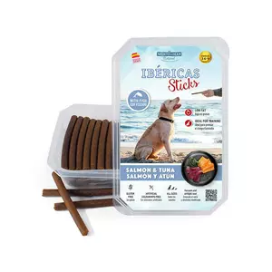 Ibericas Sticks м’ясні палички ЛОСОСЬ & ТУНЕЦЬ 800g Ibericas Sticks від MEDITERRANEAN NATURAL - це 100% натуральні ласощі для собак, що виготовлені з м’яса та риби найвищої якості. Містять олію орегано та розмарин, природні антиоксиданти, які покращують травлення. Гіпоалергенні, не містять глютену, штучних барвників, ГМО, трансжирних кислот. Склад: М'ясо, 10% лосося, 10% тунця, рис хв. 7%, рослинний гліцерин. Добавки: Консерванти: пропіонова кислота, формут кальцію, лимонна кислота. Харчові добавки: олія орегано. Аналітичні складові: Білок: 27,6%, жир: 6,5%, сира зола: 11,5%, клітковина: 1%, волога: 14,5%, 325 Ккал / 100г. омега 3: 0,23 г / 100 г, омега 6: 0,6 г / 100 г. омега 9: 1,3 г / 100 г