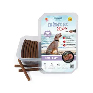 Ibericas Sticks м’ясні палички ЯЛОВИЧИНА 800g Ibericas Sticks від MEDITERRANEAN NATURAL - це 100% натуральні ласощі для собак, що виготовлені з м’яса та риби найвищої якості. Містять олію орегано та розмарин, природні антиоксиданти, які покращують травлення. Гіпоалергенні, не містять глютену, штучних барвників, ГМО, трансжирних кислот. Склад: М'ясо 70% (мінімум 14% яловичого м'яса), рис хв. 7,4%, рослинний гліцерин. Добавки: Консерванти: пропіонова кислота, формут кальцію, лимонна кислота. Харчові добавки: орегано олія Аналітичні складові: Білок: 26,6%, жир: 6,1%, сира зола: 12,7%, клітковина: 0,9%, волога: 13,1%, 324 Ккал / 100г. омега 6: 0,85 г / 100 г, омега 9: 1,7 г / 100 г