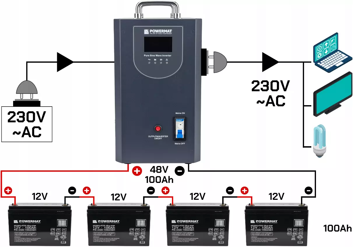 - Аварийный источник питания POWERMAT UPS – устройство, которое