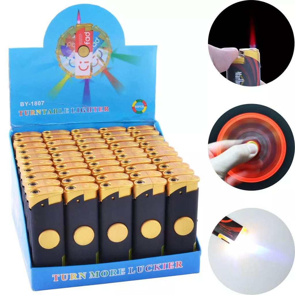 Зажигалка пластиковая со спиннером и фонариком Black (турбо пламя) №1807-24/1807-R